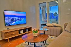 The pool with a view is a top feature of this apartment. This spacious apartment comes with 2 living rooms, 2 separate bedrooms and 2 bathrooms with a walk-in shower and free toiletries. The fully equipped kitchen has a stovetop, a refrigerator, kitchenware and an oven. The air-conditioned apartment features a flat-screen TV with streaming services, a washing machine, a private entrance, soundproof walls as well as garden views. V této ubytovací jednotce se nachází 5 postelí.