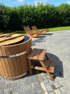 This luxurious holiday home features a hot tub, a spa bath and a sauna. Guests will find a stovetop, a refrigerator, a dishwasher and kitchenware in the fully equipped kitchen. The holiday home also has a barbecue. The air-conditioned holiday home offers a flat-screen TV with streaming services, a washing machine, a private entrance, a tea and coffee maker as well as garden views. The unit provides 4 beds.