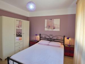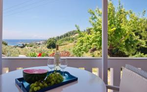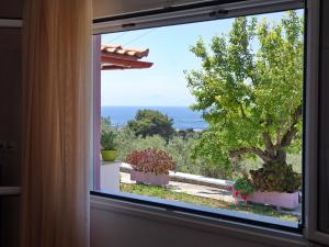 Set amidst lush greenery, this romantically decorated house offers panoramic views over the Aegean Sea from its furnished balcony. It includes a fully equipped kitchen, living room with flat-screen TV and small dining area.