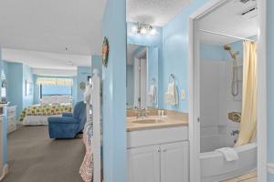 Questo appartamento con aria condizionata dispone di salotto, cucina con frigorifero e TV con canali via cavo. Lenzuola e asciugamani sono a vostra disposizione presso Myrtle Beach Resort T401.