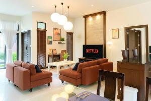 W domu wakacyjnym zapewniono taras, kilka sypialni (3), salon z telewizorem z płaskim ekranem, kuchnię ze standardowym wyposażeniem, takim jak lodówka i piekarnik, a także kilka łazienek (3) z bidetem. Obiekt MYSA House Pool Villa Central Phuket oferuje widok na ogród.