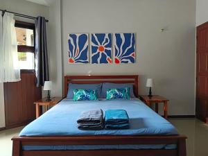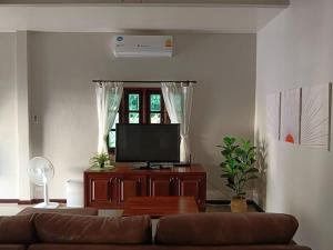 Diese Villa mit Klimaanlage ist versehen mit 3 Schlafzimmern, Flachbild-TV und einer Küche mit einem Kühlschrank und einem Ofen In dieser Villa werden Handtücher und Bettwäsche angeboten.