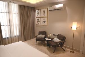 Apartmán v ubytování zahrnuje 3 ložnice, 3 koupelny, ložní prádlo, ručníky, satelitní TV s plochou obrazovkou, jídelní kout a plně vybavenou kuchyň. Z terasy ubytování Najd Hospitality - AlQairawan se otevírá výhled na město. Koupelna v Najd Hospitality - AlQairawan je vybavena sprchou, fénem, pantoflemi a toaletními potřebami zdarma.