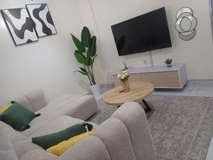 The fully equipped kitchen has a refrigerator, kitchenware, an oven and a microwave. The spacious apartment features a dining area, a wardrobe, an electric kettle as well as a terrace with garden views. The unit has 1 bed.