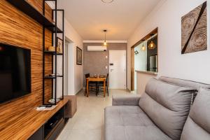 This air-conditioned apartment comprises 1 living room, 1 separate bedroom and 2 bathrooms with a shower. Guests will find a stovetop, a refrigerator, kitchenware and an oven in the kitchen. The apartment also provides guests with a barbecue. Featuring a balcony with sea views, this apartment also provides a washing machine and a flat-screen TV. The unit offers 2 beds.
