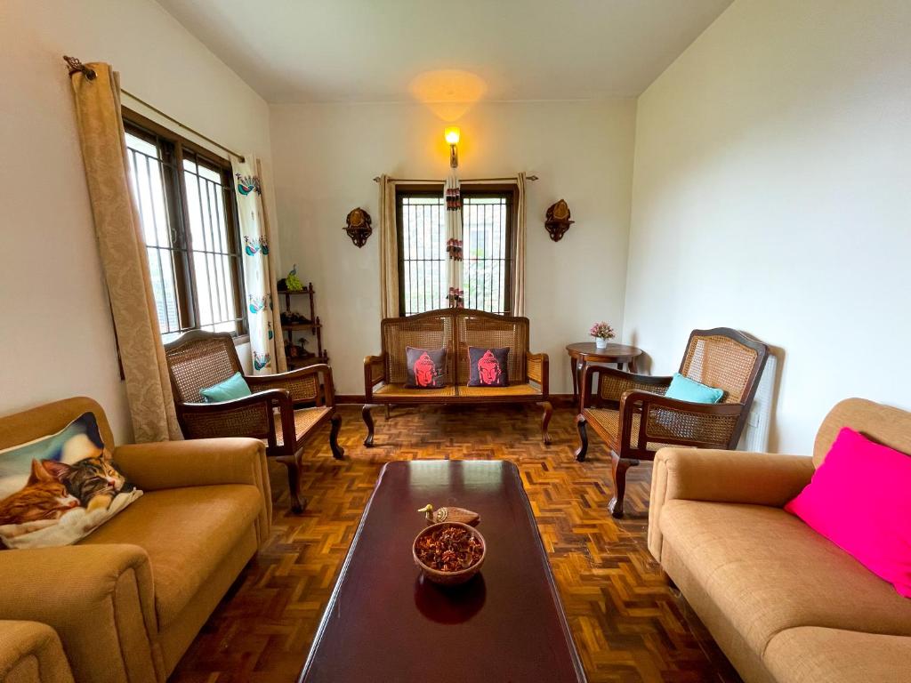 W willi zapewniono balkon, kilka sypialni (3), salon z telewizorem z płaskim ekranem, kuchnię ze standardowym wyposażeniem, takim jak lodówka i piekarnik, a także kilka łazienek (3) z prysznicem. Z okien obiektu można podziwiać góry. Willa Nashika Homestay by evaddo zapewnia Gościom ręczniki i pościel.