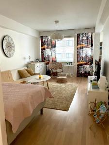 This spacious apartment features 1 living room, 1 separate bedroom and 1 bathroom with a shower and a hairdryer. Guests can make meals in the kitchen that has a stovetop, a refrigerator, a dishwasher and kitchenware. The apartment features a flat-screen TV, a washing machine, soundproof walls, a tea and coffee maker as well as city views. The unit has 3 beds.