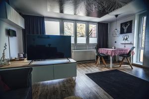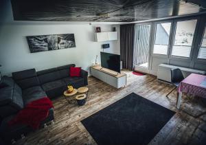 El apartamento cuenta con balcón y vistas a la montaña, y tiene 1 dormitorio, una sala de estar, TV, una cocina equipada con nevera y lavavajillas, y 1 baño con ducha. El apartamento Natur tanken im Schwarzwald dispone de toallas y ropa de cama.