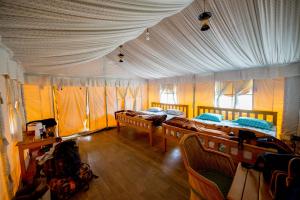 The quadruple room features a private entrance, a seating area, a balcony with garden views as well as a private bathroom boasting a shower. The unit has 5 beds.