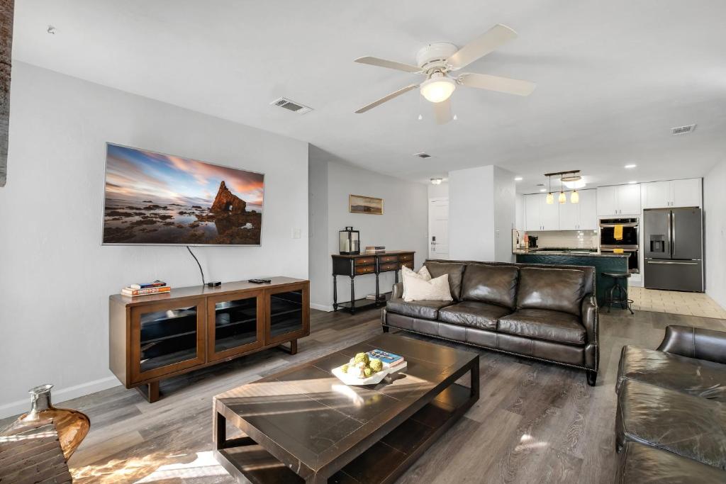 El apartamento cuenta con 3 dormitorios, 3 baños, ropa de cama, toallas, TV de pantalla plana, zona de comedor, cocina totalmente equipada y patio con vistas al jardín.