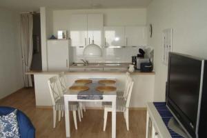 Apartmán v Nautilus, Ferienwohnung 13 inkl Strandkorb zahrnuje 1 ložnici, obývací pokoj, 1 koupelnu a plně vybavený kuchyňský kout s lednicí a myčkou. Koupelna je vybavená sprchou.