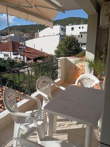 The apartment with a terrace and mountain views features 2 bedrooms, a living room, a flat-screen TV, an equipped kitchen with an oven and a fridge, and 1 bathroom with a shower. A private entrance leads into the property, where guests can enjoy wine or champagne and fruits. Nea Peramos Breeze includes an outdoor dining area.