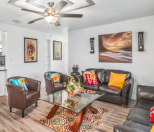 Featuring a private entrance, this spacious holiday home also consists of 4 separate bedrooms and 2 bathrooms with a bath and a shower. The well-fitted kitchen features a refrigerator, an oven and a microwave. The air-conditioned holiday home provides a flat-screen TV, a washing machine, a coffee machine, a dining area as well as garden views. The unit offers 4 beds.