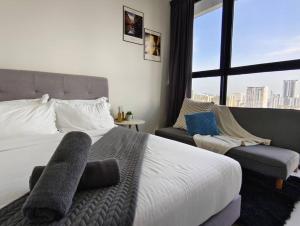 The pool with a view and sauna are the standout features of this apartment. This apartment comes with 1 living room, 2 separate bedrooms and 2 bathrooms with a walk-in shower and free toiletries. The well-fitted kitchen has a stovetop, a refrigerator, kitchenware and a microwave. The air-conditioned apartment features a flat-screen TV with streaming services, a washing machine, a seating area, a dining area as well as city views. The unit has 6 beds.