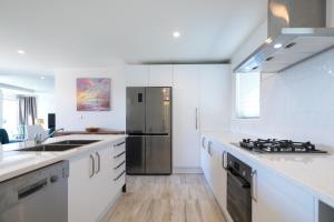 Questa casa vacanze comprende 5 camere da letto, un soggiorno, una cucina con utensili, frigorifero e bollitore elettrico, e 4 bagni con doccia e set di cortesia. La dotazione di questa casa vacanze presso Neptune - Lake Tekapo include lenzuola e asciugamani.