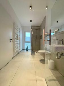 Prázdninový dům NEU! Feriendomizil TraumZeit 2 mit Sauna & Garten má 3 ložnice, 2 koupelny, obývací pokoj s TV a plně vybavenou kuchyň s jídelním koutem a lednicí. V koupelně ubytování ubytování nechybí sprcha ani fén.