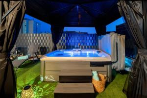 Guests will have a special experience as the holiday home features a hot tub. Featuring a private entrance, this air-conditioned holiday home consists of 2 bedrooms and 1 bathroom with a hairdryer. Guests can make meals in the kitchen that is equipped with a stovetop, a refrigerator, a dishwasher and an oven. Boasting a terrace with garden views, this holiday home also provides a washing machine and a flat-screen TV with streaming services. The unit offers 2 beds.