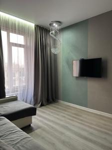L'appartement New, two-bedroom apartment in NovaCity Complex dispose d'une chambre, d'une télévision à écran plat, de la climatisation et d'un salon.