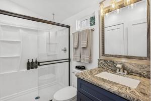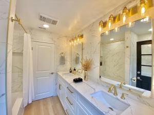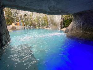 Zaplecze odnowy biologicznej obiektu NEW LUXURY ESTATE - Sleeps 22 - Saltwater Pool, Spa, Waterfall With Cave Grotto! obejmuje wannę z hydromasażem i centrum spa.