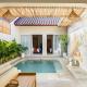 Tato vila s klimatizací má 2 ložnice, obývací prostor, kuchyň s kompletním vybavením včetně lednice a varné desky a 2 koupelny. V koupelně ubytování New Mediterranean Inspired Villa in Canggu je k dispozici bidet a fén. V ubytování New Mediterranean Inspired Villa in Canggu jsou pro hosty připraveny ručníky a ložní prádlo.