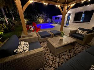 This villa features a pool with a view. Boasting a private entrance, this air-conditioned villa features 1 living room, 3 separate bedrooms and 2 bathrooms with a walk-in shower and a bath. Guests will find a stovetop, a refrigerator, a dishwasher and kitchenware in the well-equipped kitchen. The villa also comes with a barbecue. The spacious villa features a flat-screen TV with streaming services, a washing machine, a tea and coffee maker, a seating area as well as garden views. The unit has 4 beds.