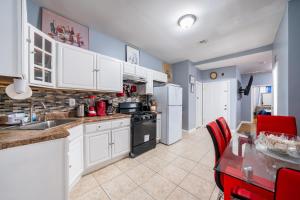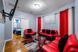 Featuring a private entrance, this air-conditioned holiday home is comprised of 1 living room, 3 separate bedrooms and 3 bathrooms with a bath and a hairdryer. In the well-equipped kitchen, guests will find a stovetop, a refrigerator, kitchenware and an oven. The holiday home features parquet floors, a seating area with a flat-screen TV with streaming services, a washing machine, a tea and coffee maker, as well as a dining area. The unit offers 3 beds.