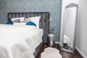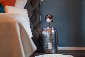 Questo appartamento comprende 2 camere da letto, un soggiorno, un angolo cottura con utensili, frigorifero e macchina da caffè, e 1 bagno con doccia e set di cortesia. nidusROOMS moderne Barock Suite fornisce lenzuola e asciugamani ai propri ospiti.