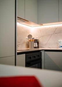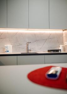 - Small kitchen area,