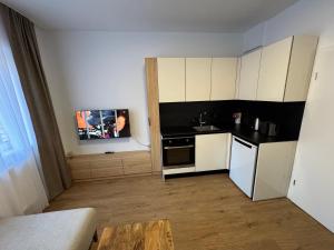 Tento apartmán má 2 ložnice, obývací prostor, kuchyň s kompletním vybavením včetně lednice a varné desky a 1 koupelnu. V koupelně ubytování Nina Ferienwohnungen nechybí sprcha ani fén. V ubytování ubytování jsou pro hosty připraveny ručníky a ložní prádlo.