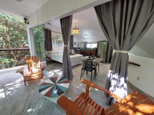 Triplex Villa 1st floor: veranda, air conditioning, bedroom, bathroom 2nd floor: veranda, living room, kitchen, social bathroom 3rd floor: terrace with forest view, mobile with a tent and sofa to relax access between 2nd floor to the 3rd floor by outside stairs access between 1st and 2nd floor by inside stairs The Triplex is cleaning each three days. Towels and linens are changed.