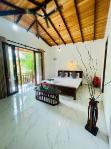 The air-conditioned villa features 2 bedrooms and 2 bathrooms with a shower and a bidet. The villa's kitchen is available for cooking and storing food. The unit has a tea and coffee maker, garden views, a balcony and fruit is featured for guests. The unit provides 2 beds.