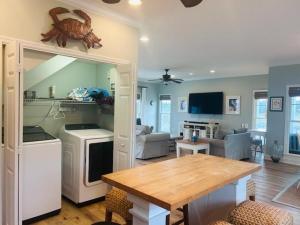 Klimatizovaný prázdninový dům No Egrets condo zahrnuje 3 ložnice, obývací pokoj, plně vybavenou kuchyň s lednicí a myčkou a 2 koupelny. Koupelna je vybavená vanou.