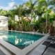 Guests can relax in the garden at Noi's Villa - tropical oasis with pool and maid.