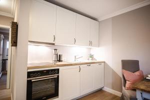 This apartment features a kitchenware, toaster and dishwasher. This is a semi-basement apartment.