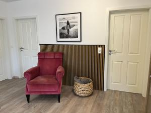 El apartamento en Nordstrand tiene 2 dormitorios, baño con ducha y secador, lavadora y cocina con nevera y lavavajillas.