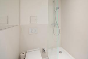 Das Nordstrandperle Ap O2 umfasst ein Schlafzimmer, ein Wohnzimmer, eine voll ausgestattete Küche mit Kühlschrank und Kaffeemaschine sowie ein Badezimmer mit Dusche. Es gibt einen TV.