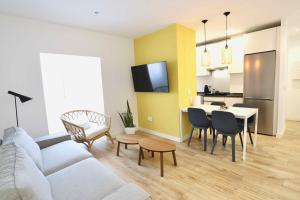 Trzysypialniowy apartament w Notel Club - Bonito Apt Pinares - Sardinero posiada salon z telewizorem, w pełni wyposażoną kuchnię oraz łazienkę.