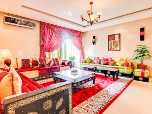 Featuring a private entrance, this spacious apartment also comprises 3 bedrooms, a seating area and 2 bathrooms with a walk-in shower and a bath. Meals can be prepared in the kitchen, which comes with a refrigerator, kitchenware, an oven and a microwave. The air-conditioned apartment provides a flat-screen TV with cable channels, a washing machine, soundproof walls, a tea and coffee maker as well as city views. The unit offers 5 beds.