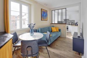 Apartmán Nouveau - Jolie Pépite Le Rabelais nabízí 1 ložnici, 1 koupelnu, plně vybavenou kuchyň s jídelním koutem a lednicí a obývací část s TV s plochou obrazovkou. V koupelně ubytování Nouveau - Jolie Pépite Le Rabelais nechybí sprcha ani fén.