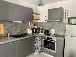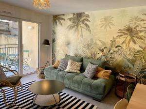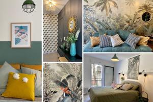 Apartmán NOUVEAU - Jungle Montpeul - Clim - Wifi fibre - Netflix - 5' du centre et gare - Parking - Loggia - 15' des plages nabízí 2 ložnice, 1 koupelnu, ložní prádlo, ručníky, kabelovou TV s plochou obrazovkou, jídelní kout a plně vybavenou kuchyň. Z balkonu ubytování ubytování se otevírá výhled do zahrady. Koupelna v ubytování disponuje sprchou, pračkou, fénem a toaletními potřebami zdarma.