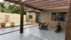 Boasting 2 bedrooms and 2 bathrooms, this holiday home has a living room and private pool where you can relax. Meals can be prepared in the kitchen, which has a stovetop, a refrigerator, an oven and a microwave. The air-conditioned holiday home features a flat-screen TV with streaming services, a washing machine, a tea and coffee maker, a barbecue as well as garden views. The unit offers 3 beds.