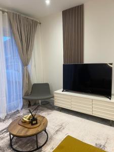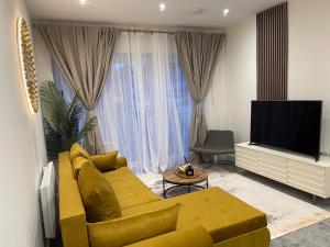 W apartamencie z 2 sypialniami zapewniono salon z telewizorem z płaskim ekranem, kuchnię z pełnym wyposażeniem, w tym lodówką i piekarnikiem, a także łazienkę (1) z wanną. Ręczniki i pościel są dostępne w apartamencie NOVA SUITE - Luxury, Stylish & fully furnished 2 bed Apartment 7minutes drive from the beach Sleeps 4 to 5.
