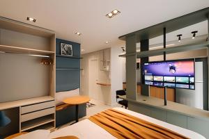 L'appartamento climatizzato di Novinho, Central e c/ Garagem! dispone di salotto, cucina con frigo e TV a schermo piatto.