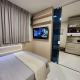 This air-conditioned apartment comes with a seating area, a fully equipped kitchen with a microwave, and a TV.
