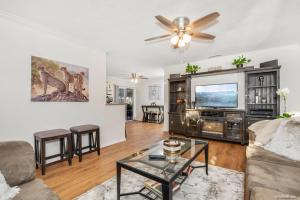 Featuring a private entrance, this air-conditioned holiday home consists of 1 living room, 3 separate bedrooms and 2 bathrooms with a walk-in shower and a bath. Guests will find a stovetop, a refrigerator, a dishwasher and kitchenware in the well-fitted kitchen. The holiday home also offers a barbecue. The spacious holiday home provides a washing machine, a tea and coffee maker, a seating area, a flat-screen TV with streaming services, as well as garden views. The unit offers 3 beds.
