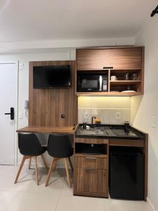 Апартаменты объект размещения располагают спутниковым ТВ с плоским экраном, 1 спальней, обеденной зоной, оборудованной кухней и 1 ванной комнатой. Комплекты постельного белья и полотенец доступны для гостей объект размещения. С террасы O melhor do Ecoville com sacada - Novinho! открывается городской пейзаж.