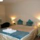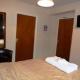 Super king bed or a twin bedded room. The bathroom has a walk in shower.