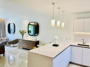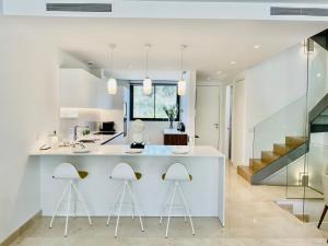 The pool with a view is the standout feature of this villa. Boasting a private entrance, this air-conditioned villa comes with 1 living room, 3 separate bedrooms and 3 bathrooms with a bath and a shower. Guests will find a stovetop, a refrigerator, a dishwasher and an oven in the kitchen. The villa also includes a barbecue. The spacious villa features a flat-screen TV with streaming services, a washing machine, a tea and coffee maker, a seating area as well as sea views. The unit has 5 beds.