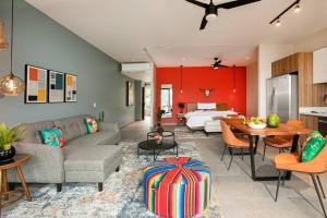 Guests will have a special experience as this apartment provides a pool with a view. This spacious apartment is comprised of 1 living room, 1 separate bedroom and 1 bathroom with a bath or a shower and a hairdryer. In the kitchen, guests will find a refrigerator, a dishwasher, kitchenware and a microwave. The air-conditioned apartment offers a flat-screen TV, a washing machine, soundproof walls, a tea and coffee maker as well as sea views. V této ubytovací jednotce je k dispozici 2 postele.