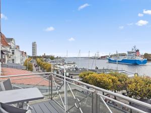Apartmán má 2 ložnice, 1 koupelnu, ložní prádlo, ručníky, TV, kuchyň s kompletním vybavením a balkon s výhledem na řeku. V koupelně ubytování Objekt-Nr 161 - Hafen - Vorderreihe nechybí sprcha ani fén.
